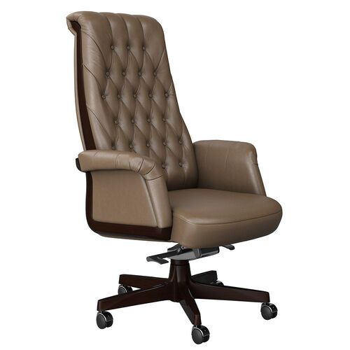 1. Классические кресла руководителей. Внешний вид такой мебели – основательный, надежный и даже консервативный. Стиль «классицизм» требует натуральных отделочных материалов в виде хорошо выделанной кожи и вставок из ценных пород дерева. Украшением могут являться искусно вырезанные орнаменты. Спинка у таких кресел, как правило, имеет прямоугольную, либо овальную форму.
