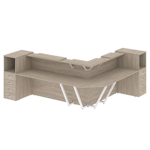 Стойка ресепшен угловая левая (полки высокие) с подсветкой А4 9873 А4 9873 СЕ/СЕ/СЕ Серый