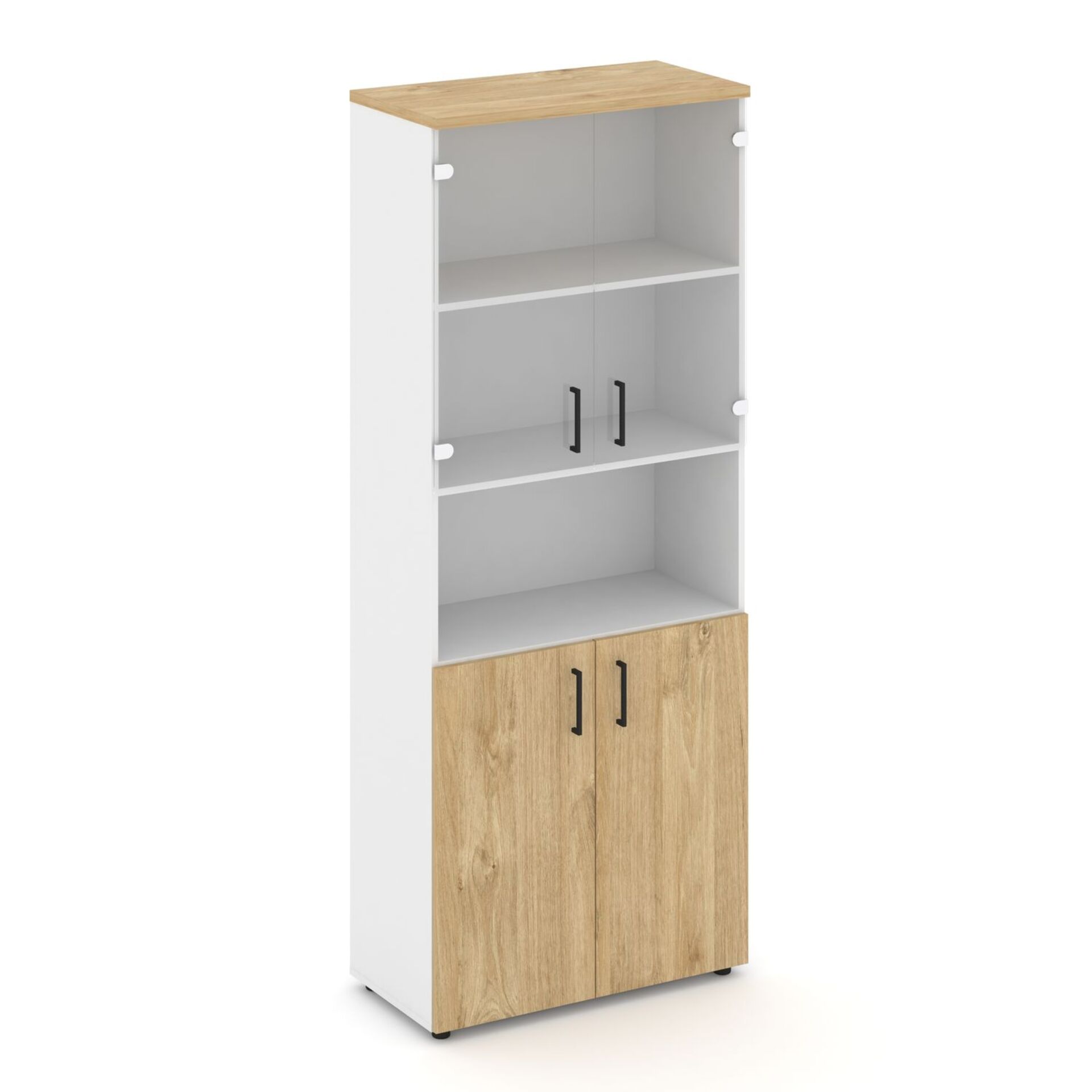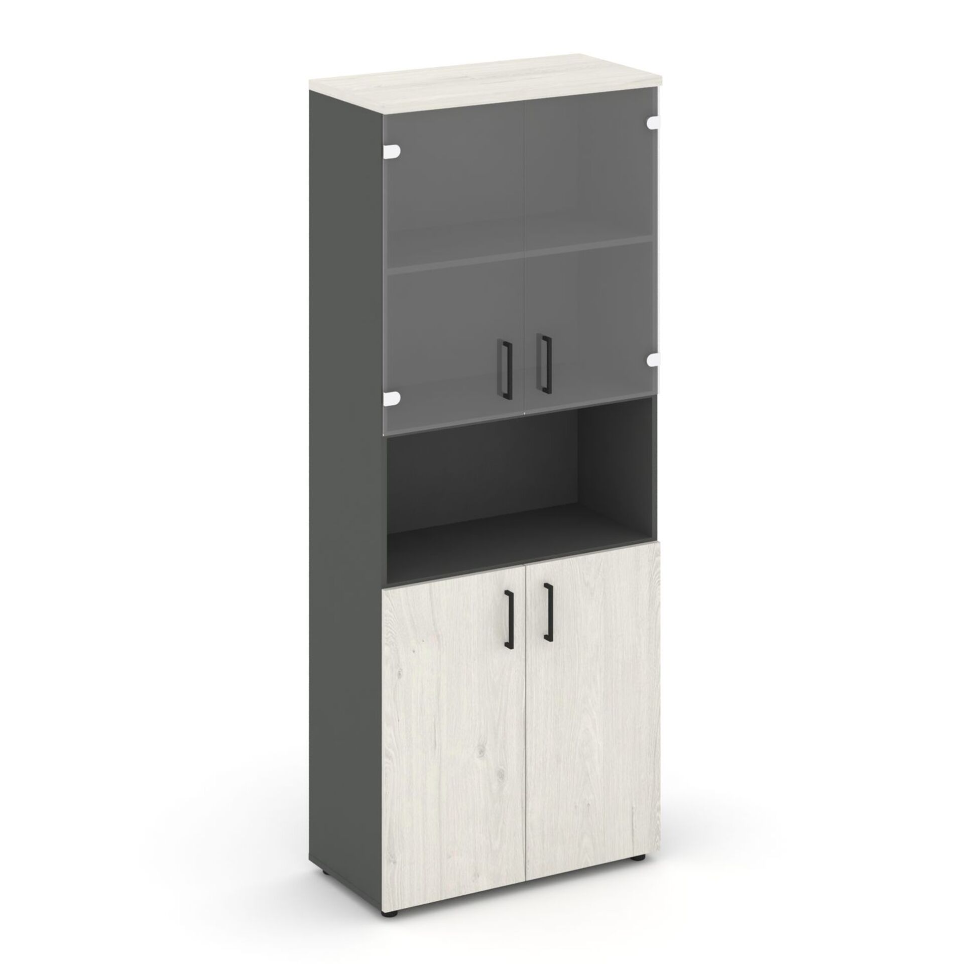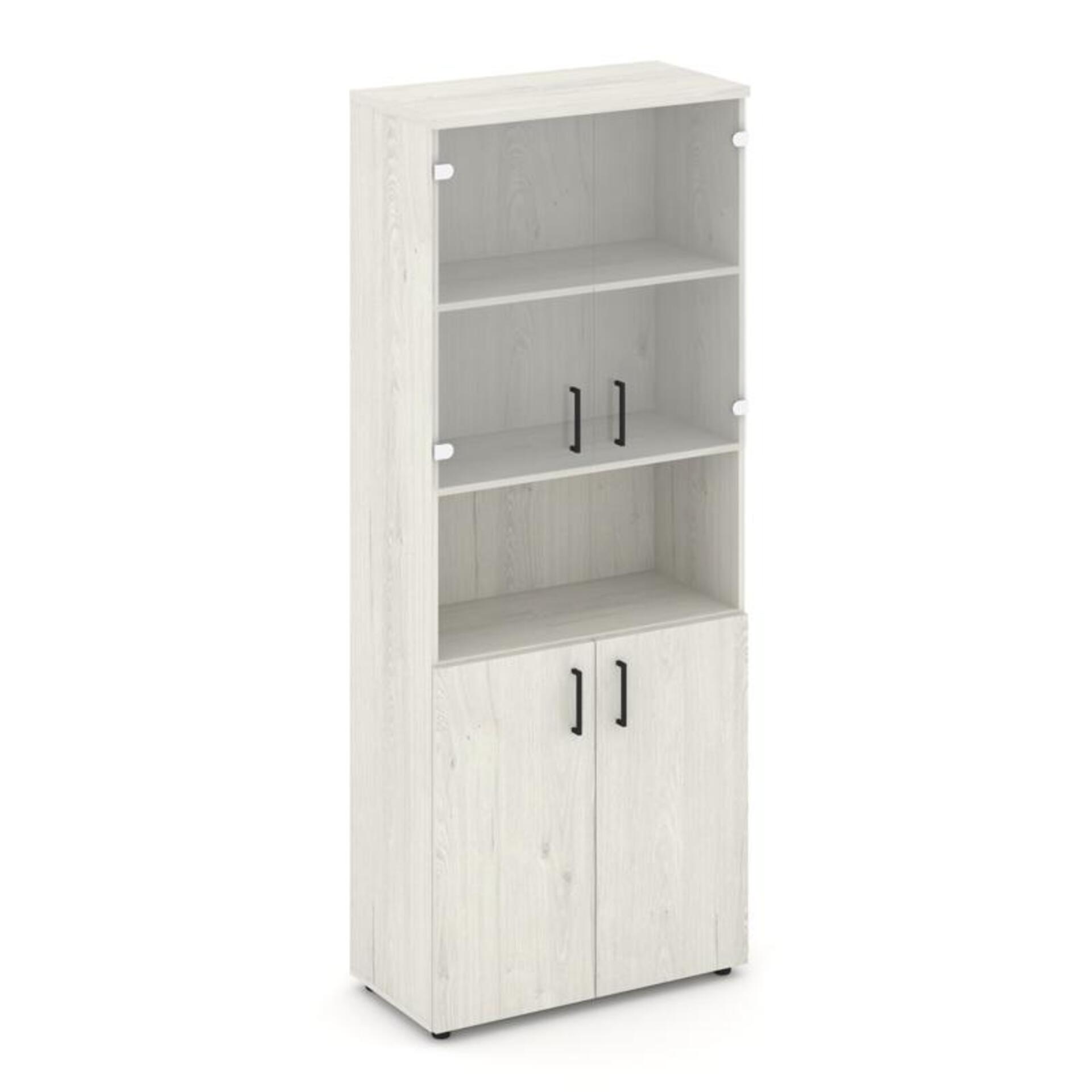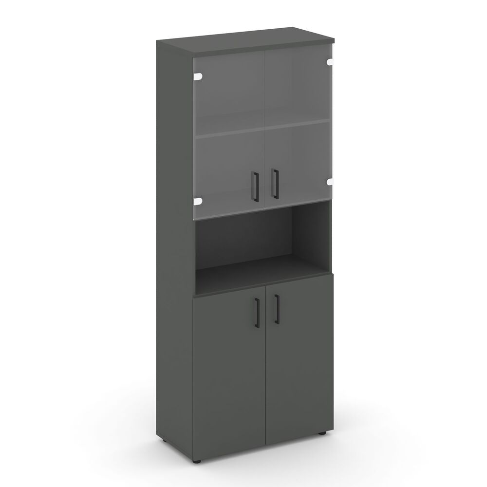 Шкаф высокий широкий (2 низких фасада ЛДСП + 2 низких фасада стекло прозрачное) SN.STS.E-105