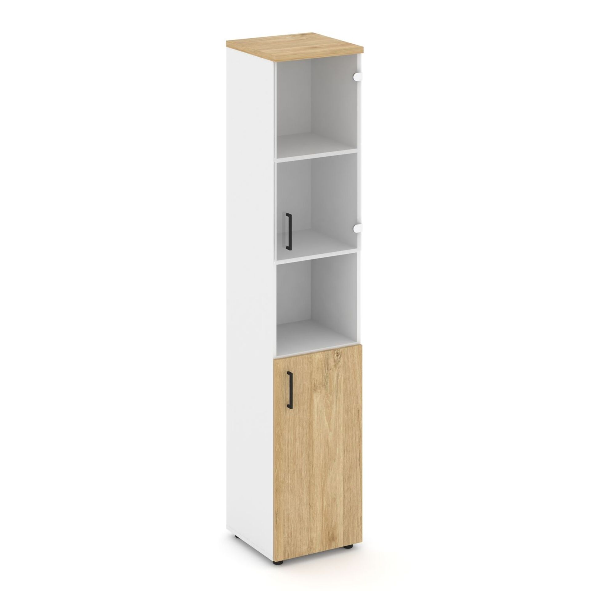 Шкаф высокий узкий правый (1 низкий фасад ЛДСП + 1 низкий фасад стекло прозрачное) SN.STU.E-105(R)