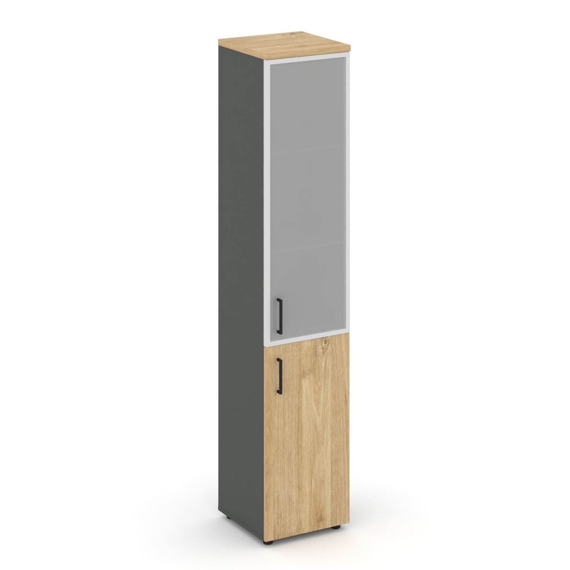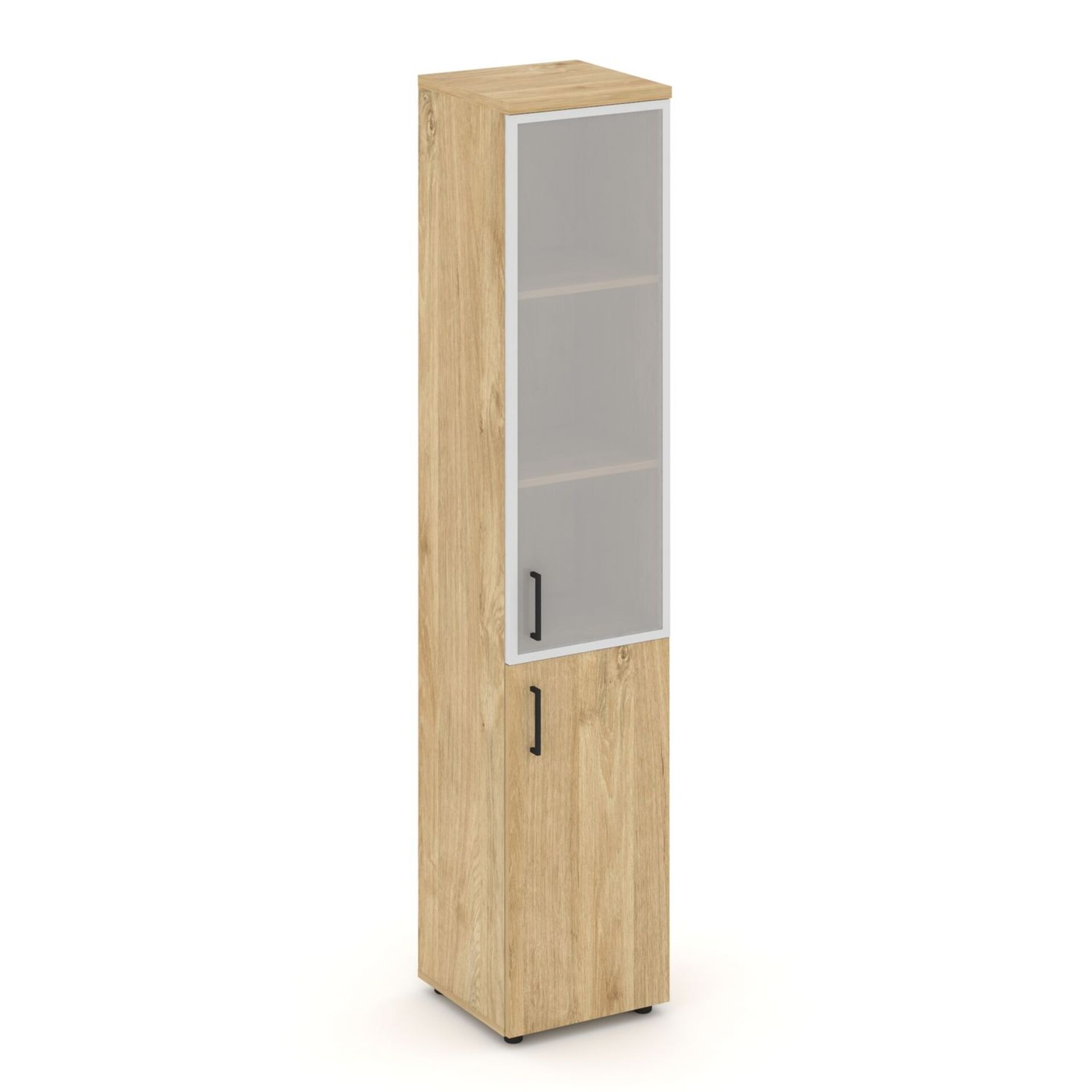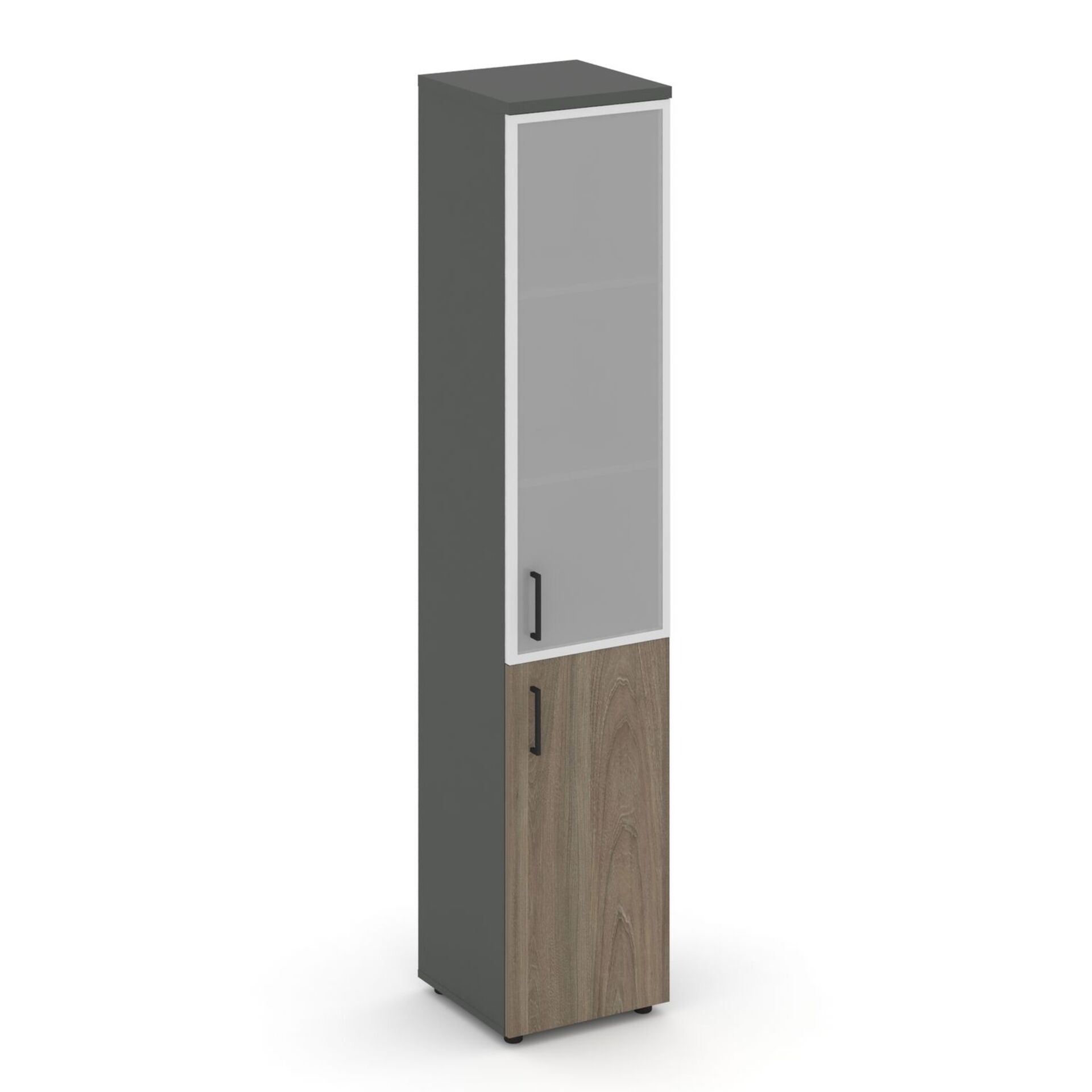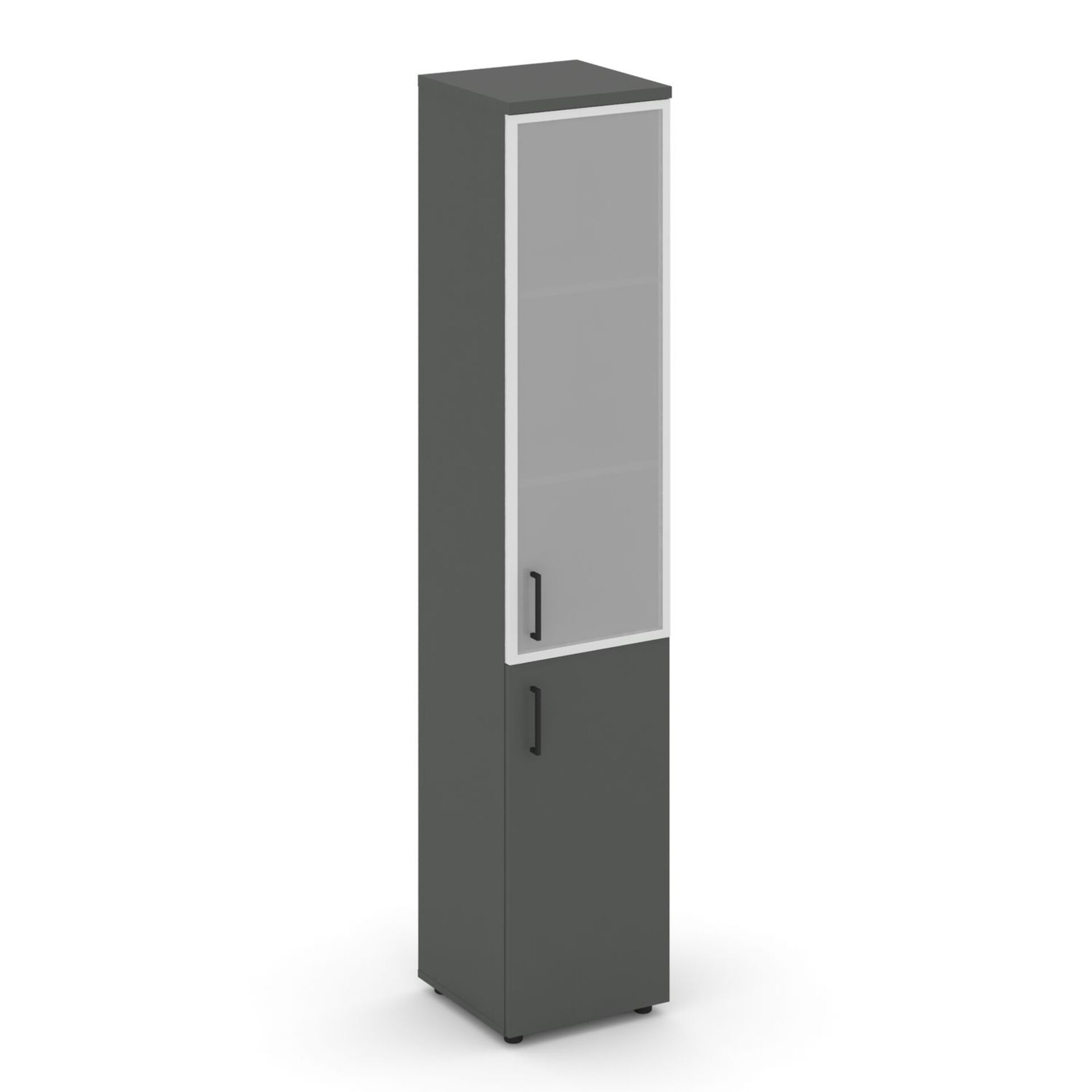 Шкаф высокий узкий правый (1 низкий фасад ЛДСП + 1 средний фасад стекло сатин в раме) SN.STU.E-103(R)
