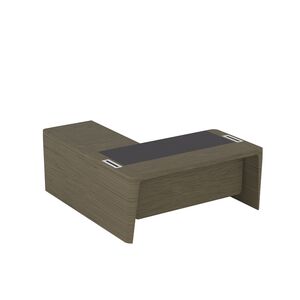 Стол для руководителя правый с кожаным бюваром, приставкой на большой тумбе и фронтальной панелью ПМ 157