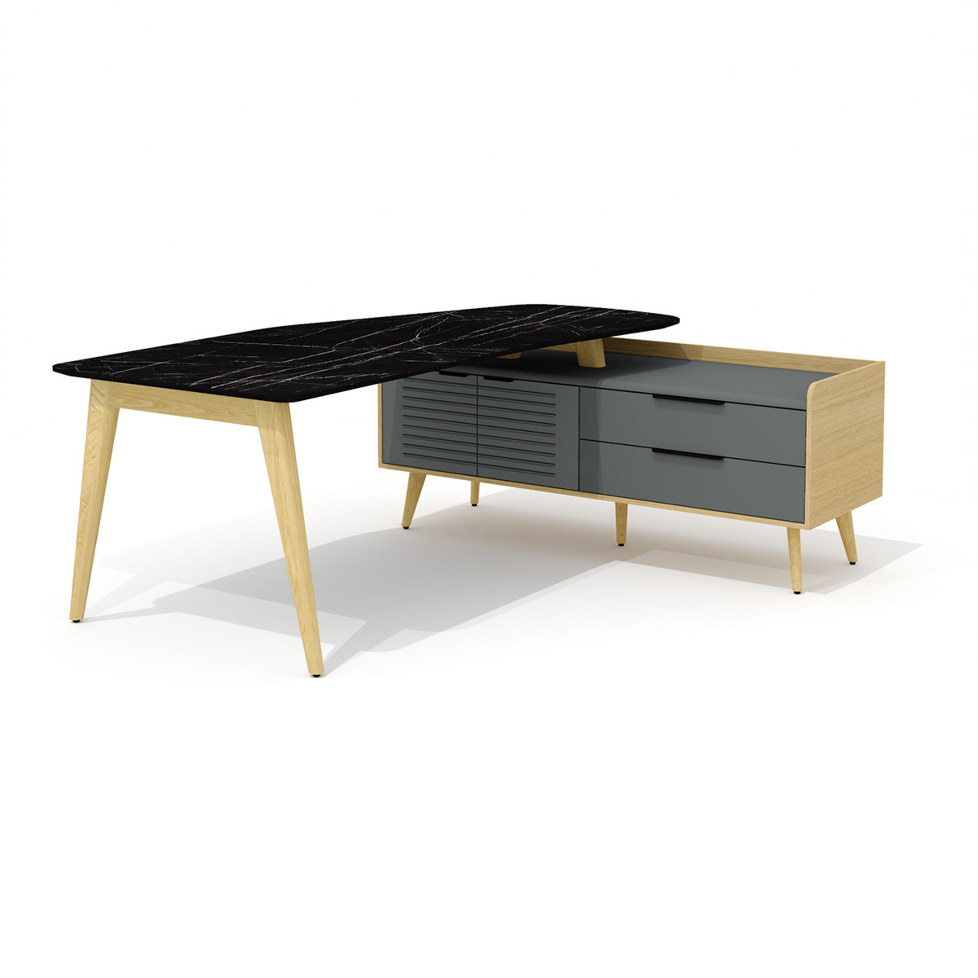 Стол рабочий эргономичный с опорной тумбой Rem-200.1R + Rem-33R